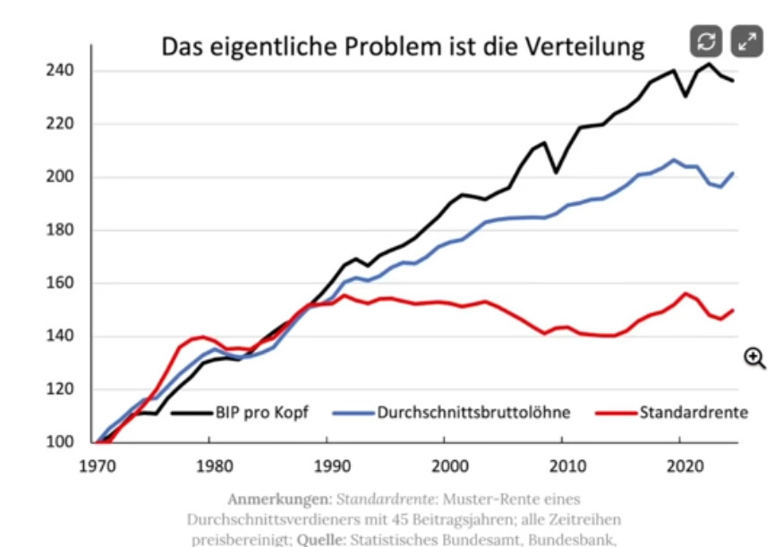 Er sagt u.a. “Die 120 Milliarden Euro, die da im Raum stehen, machen bis 2040 gerade einmal 1,5 Prozent der gesamten Rentenausgaben aus. Das aktuelle Gesetz zur Haltelinie entscheidet nicht im Ansatz darüber, ob die Rente noch strukturell finanzierbar ist. Bei der Strukturreform geht es um ganz andere Summen.”