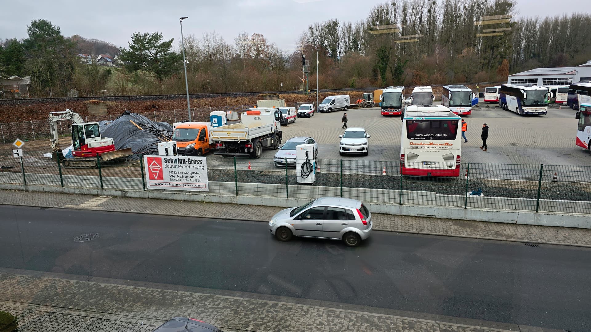 Spaßeshalber mal ein Foto aus unserem Bürofenster. Da werden gerade 6 Ladesäulen hingebaut (man sieht, 2 stehen schon). Die Linienbusse unseres Nachbarn sollen zukünftig größtenteils elektrisch fahren. Der Inhaber des Familienunternehmens, Ü60, macht das ja nicht aus Nächstenliebe, sondern weil er betriebswirtschaftlich denken muss. Selbst eine Kollegin, die zur Miete wohnt und anfangs in der Stadt laden musste, hat festgestellt, dass sich ein eAuto für sie rechnet.