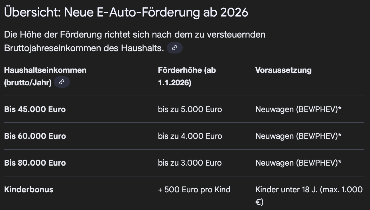 Aktuell werden eben nicht die effizient genutzten Plug-in-Modelle wie deiner gezielt unterstützt, sondern völlig übermotorisierte Luxus-Modelle, die im Alltag häufig fast ausschließlich mit Verbrenner gefahren werden – auch, weil sie über zwei Tonnen wiegen und kaum jemand regelmäßig lädt. Diese Fahrzeuge können durch die neuen Förderbedingungen plötzlich bis zu 6.000 Euro erhalten – obwohl sie im Realbetrieb oft mehr CO₂ ausstoßen als viele reine Verbrenner.