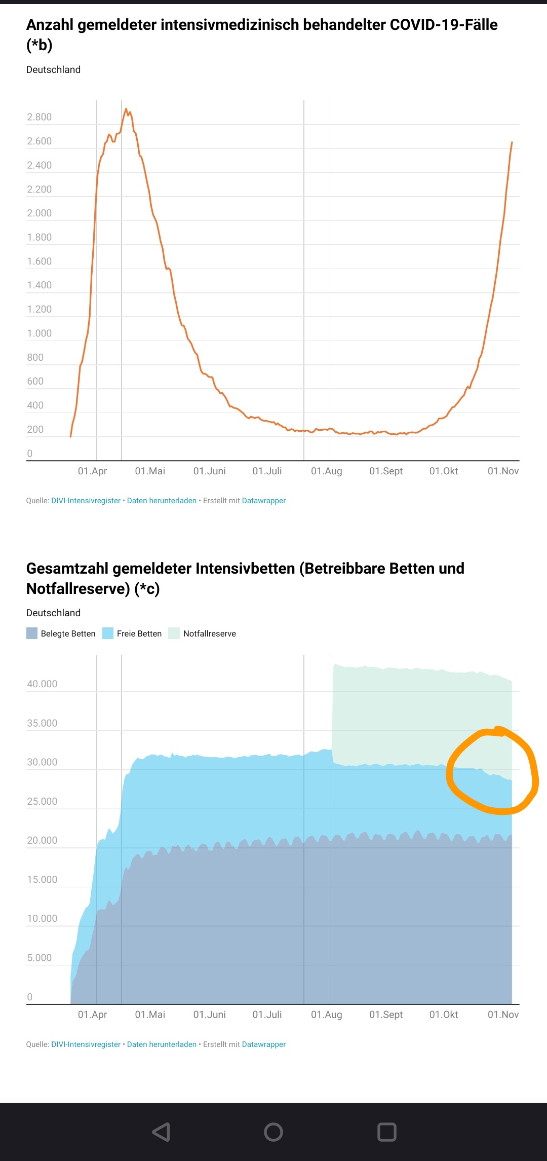 Ich möchte eine Ergänzung oder Recherche-Anregung zum Thema Intensivkapazitäten geben. Aus meiner persönlichen Erfahrung als Arzt aus mittlerweile drei Kliniken in verschiedenen Regionen und Versorgungssrufen, und auch nach Rücksprache mit vielen Kollegen sind diese 30% freien Intensivbetten, die im DIVI-Intensivregister verzeichnet werden schlicht nicht vorhanden.