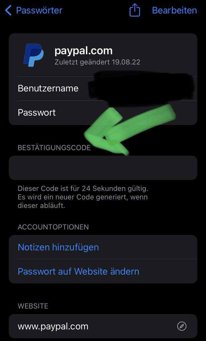 Da kann ein Link von der PayPal Seite (Einstellungen → Sicherheit → 2FA → Drittanbieter App) oder der QR-Code eingefügt werden. Dann generiert die Apple-Keychain den 6-stelligen Code für die 2FA.
